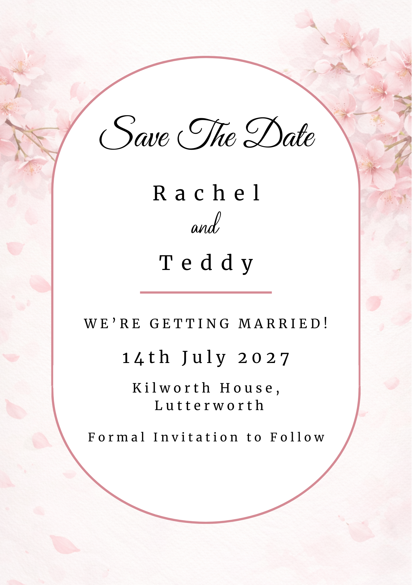 A simple, elegant addition — giving you something beautiful to send, while your invitation website takes care of everything else.