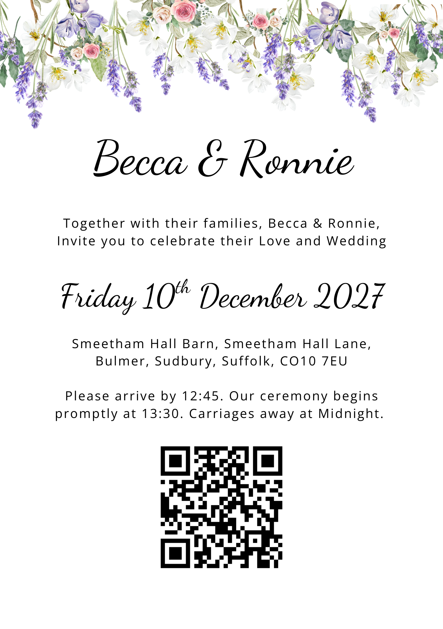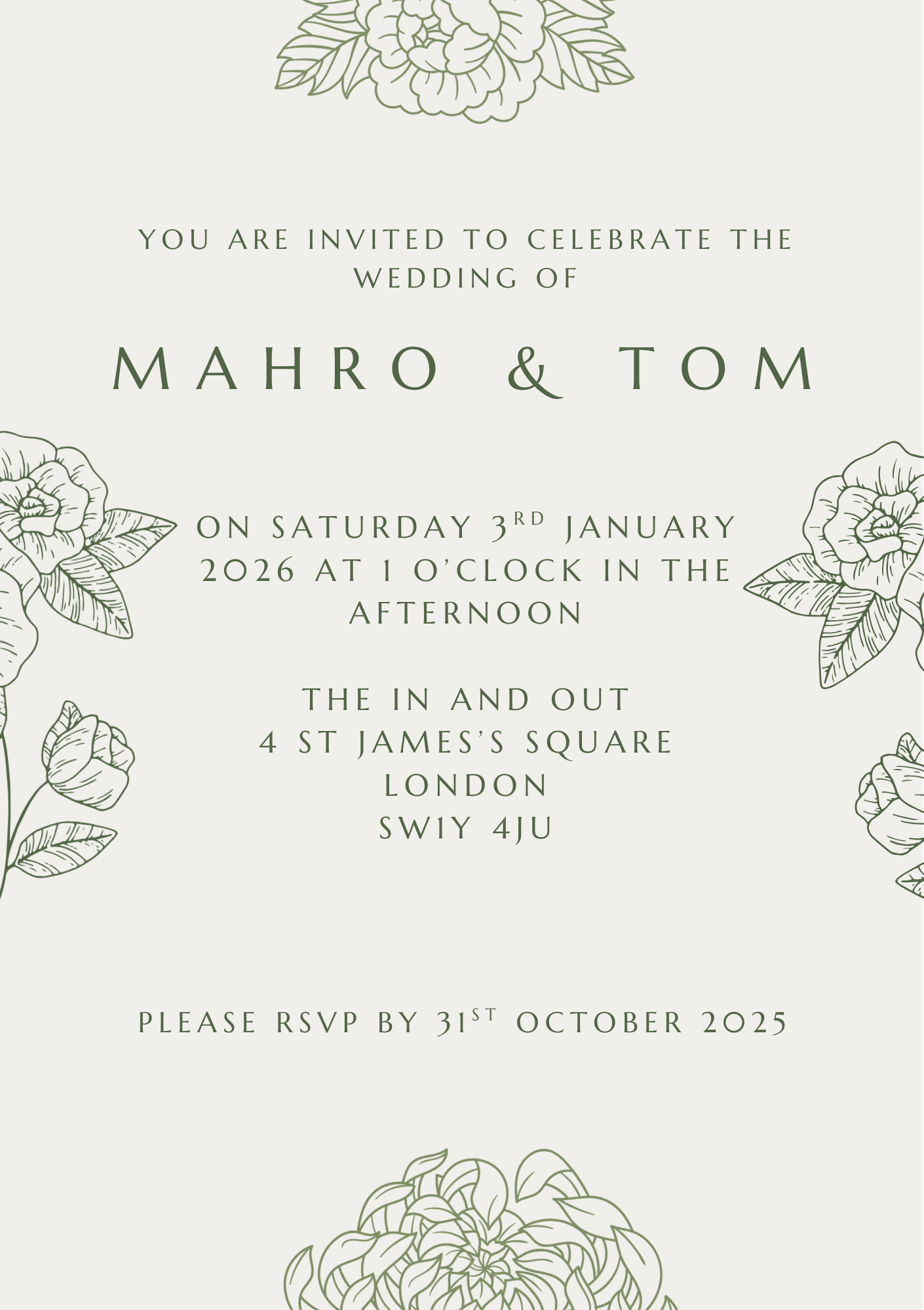 - Can be used as introduction to your website, save the date or for guests that would prefer a printed invite.